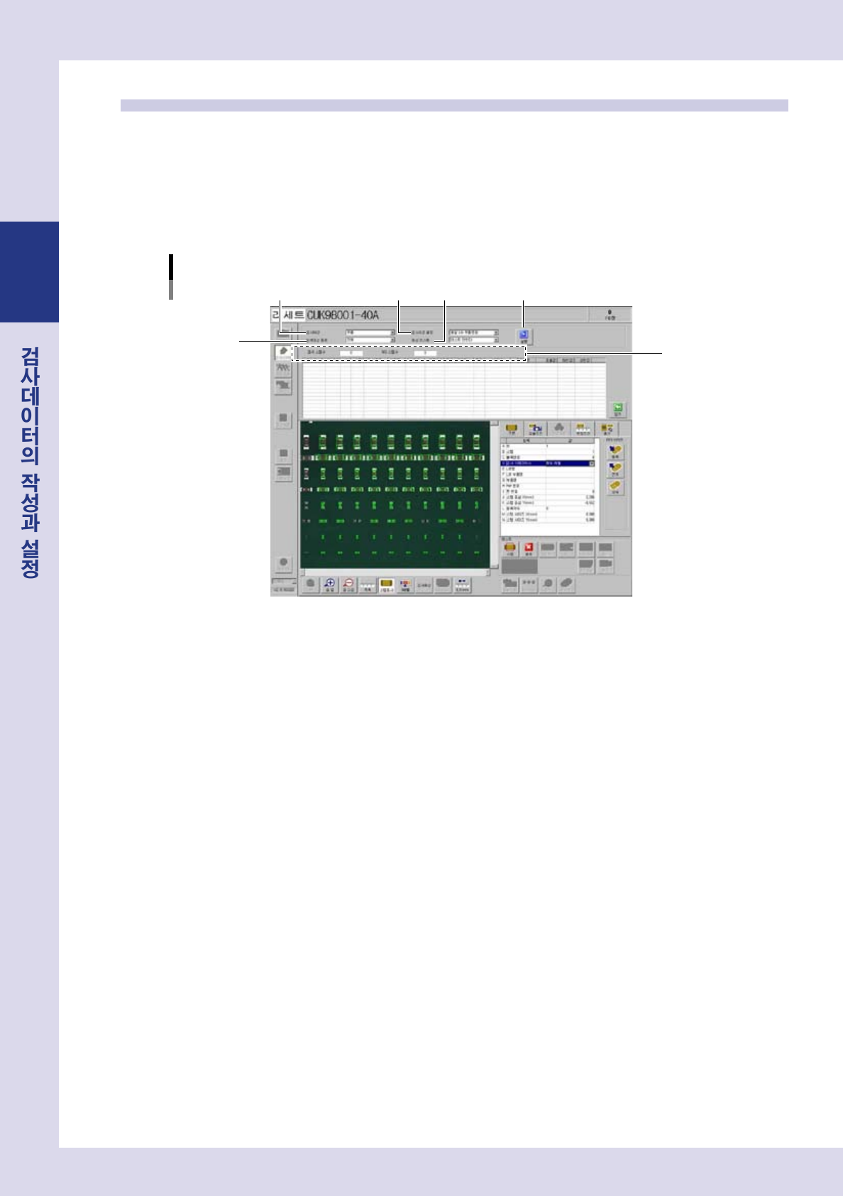 2-44 2 7. 5 멀티 테스 트 멀티 테 스 트를 실 행 할 대상이나 검 사조 건 , 범위 를 지 정 할 수가 있 습니 다 . 1 [ 멀티 ] 버튼 을 누 릅 니다 . 상 부에멀 티테 스트창이열 립 니 다 . 2 검사할 조건을 설정 합 니다 . 멀티 테스트 화면 1 3 2 4 5 6 28250 -P 9- 0 0 1. 검 사 대 상 스탭 : 검사데 이 터의모 든스 탭 을검…