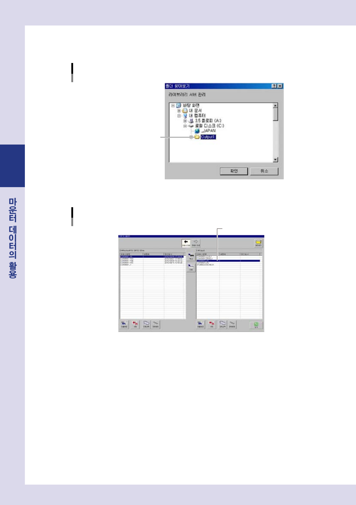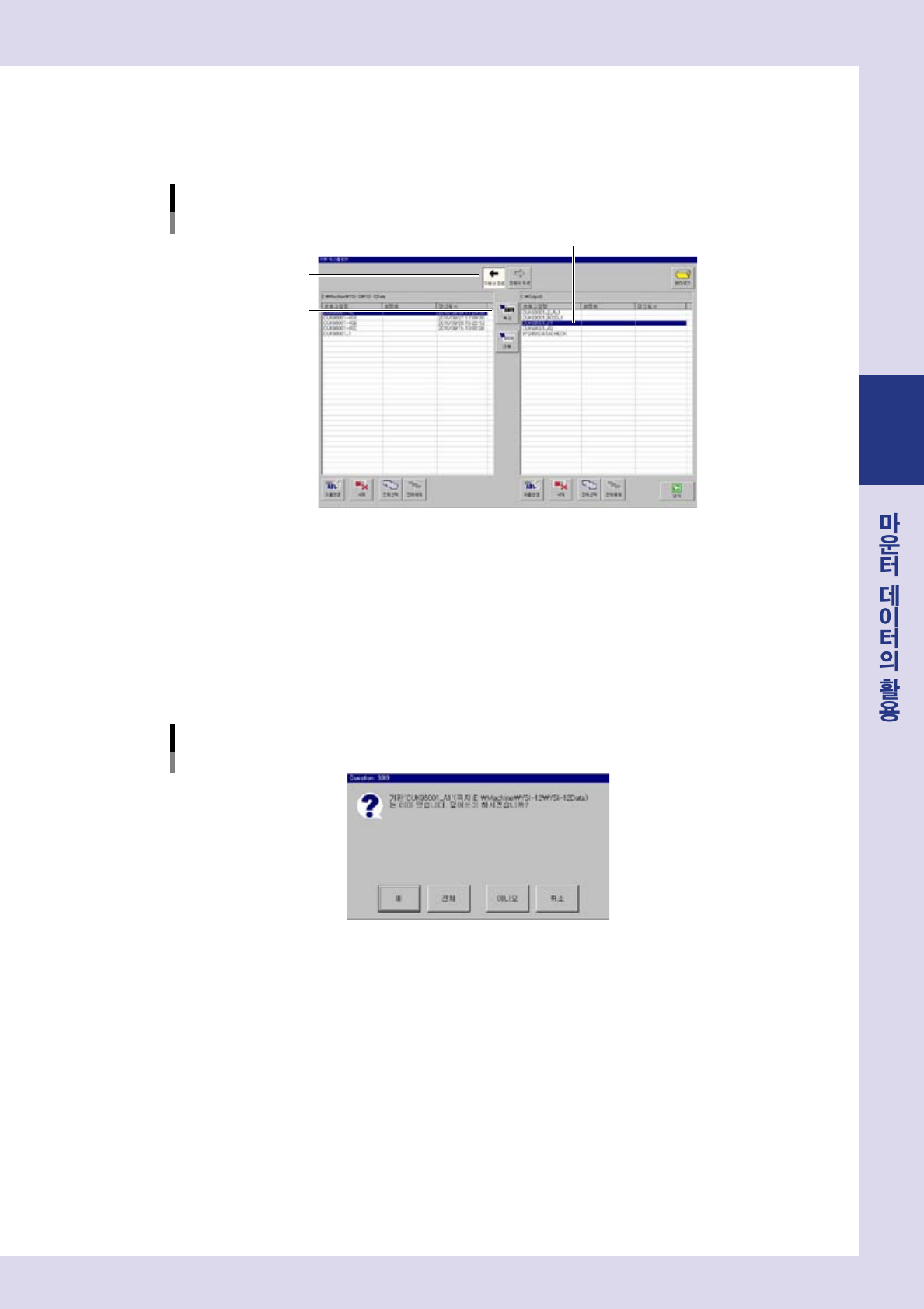 우측리스트로부터취입할데이터를선택하고 ,[ 우에서좌로 ] 버튼을눌러주십시오 .