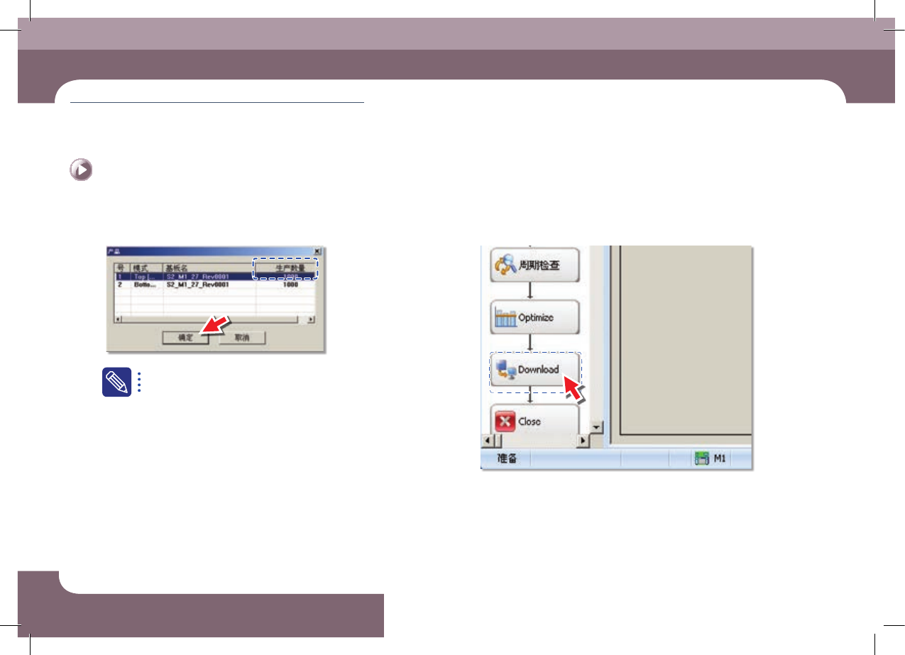 EXCE N PRO O pe ra tio n Han db oo k 3-8 第 3 章 本 Chapter 主要介绍生产作业顺序。 生产 High Perform ance Modular Mounter 准备生产 Ⅱ > 查看作 业及准备PCB文 件 准备生产 Ⅱ 生产 Step 5. 设 定 了 生 产 数 量 后 ,单 击 < 确定 > 键。 不能在设备的 MMI 输入或更改生产数量。 Step 6. 单击…