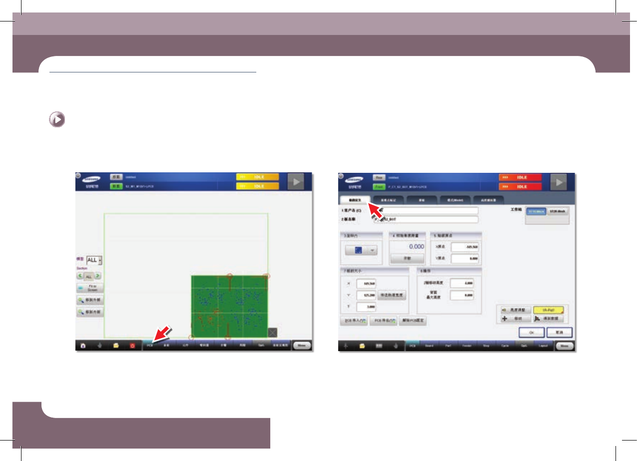 EXCE N PRO O pe ra tio n Han db oo k 3-11 第 3 章 本 Chapter 主要介绍生产作业顺序。 生产 High Perform ance Modular Mounter 准备生产 Ⅲ > 打开 PCB文 件 准备生产 Ⅲ 可以在正面通道与背面通道打开不同的 PCB 文件后生产不同的 PCB 。 在 MMI 上端左边的 < 前面 > 键被选择为绿色的状态下,可以对正面通道进 行…