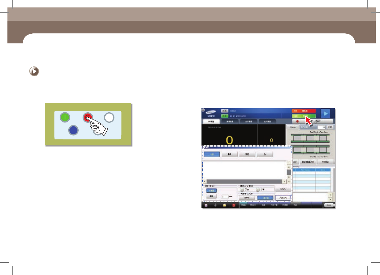 生产过程中的对应措施 第 4 章 High Perform ance Modular Mounter EXCE N PRO O pe ra tio n Han db oo k 4-1 2 本 Chapter 主要内容为在生产中检查错误,并采取措施时的设备暂停方法( Continue / Start 模式)、紧急停止方法( 人为/系统紧急停止)、紧急停止后重启系统的方法等。 紧急 停 止 > 紧急 停 止 : 人为的 紧急 停 止 …