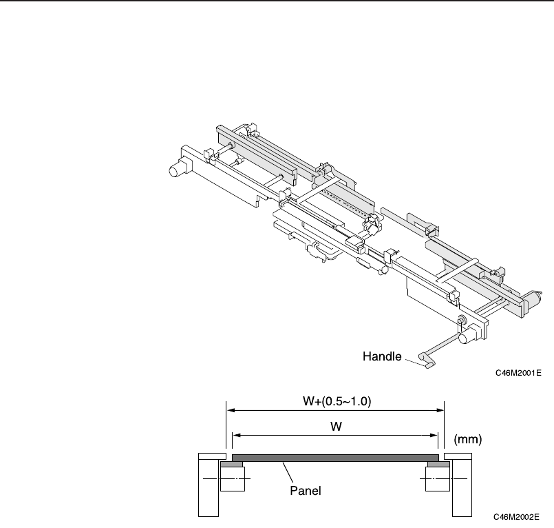 2. T urn the handle on the out-conveyor to adjust the conveyor width until the panel can be conveyed smoothly . The conveyor width should be such that there is a 0.5 mm gap on each side of the panel as shown in the figur…