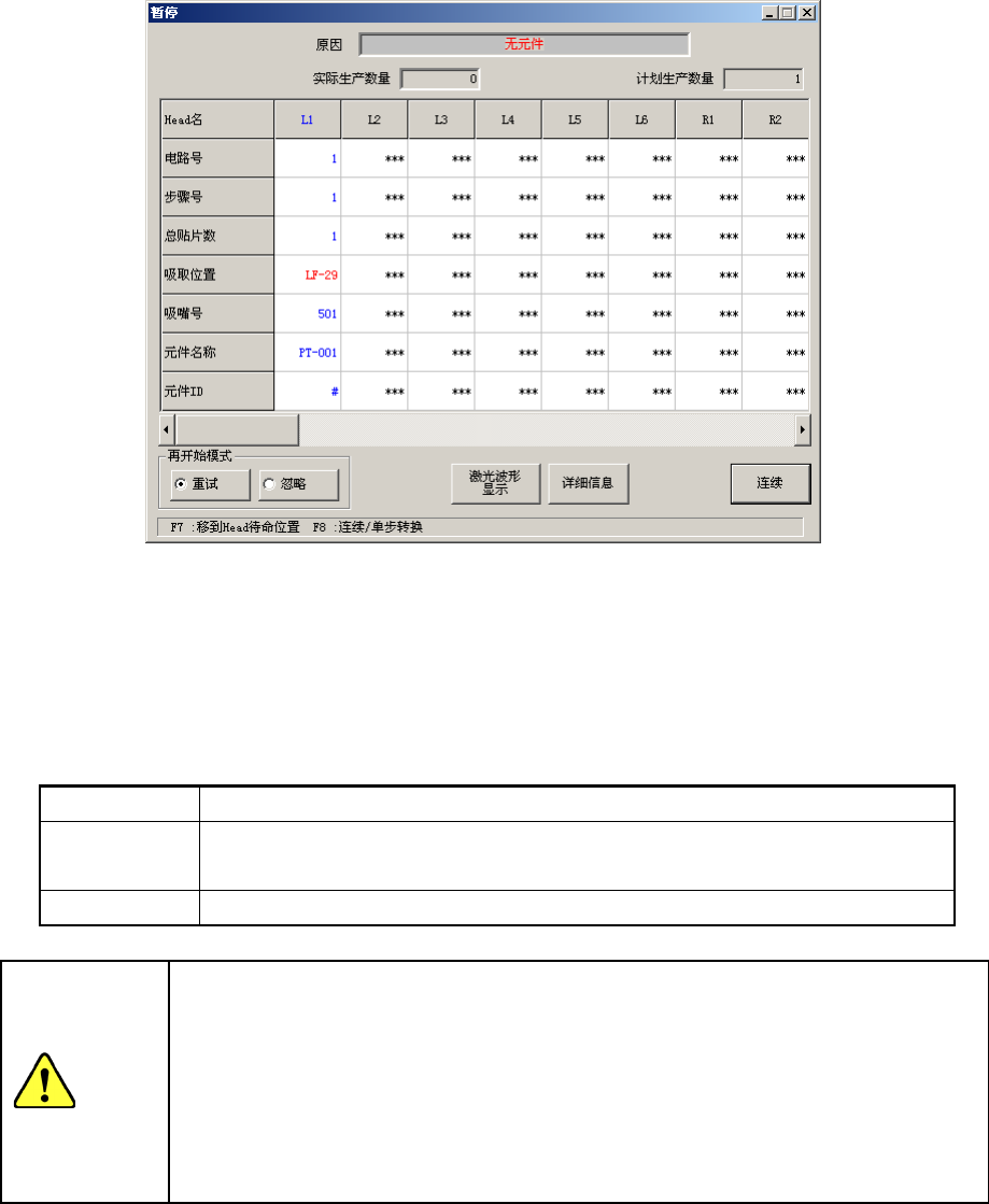 选择再次执行或忽略无元件继续运行按下<START>开关后,贴片头立即移动,执行