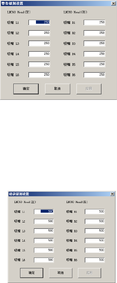 从菜单栏中选择[数据][警告级别设置][各贴片头]后,显示下图的[警告级别设置]对话框。