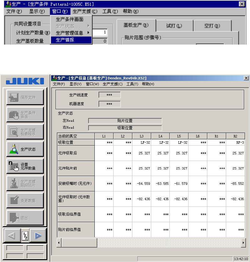 从生产管理信息菜单栏中选择[窗口]→[生产管理信息]→[吸取率]后,显示送料器