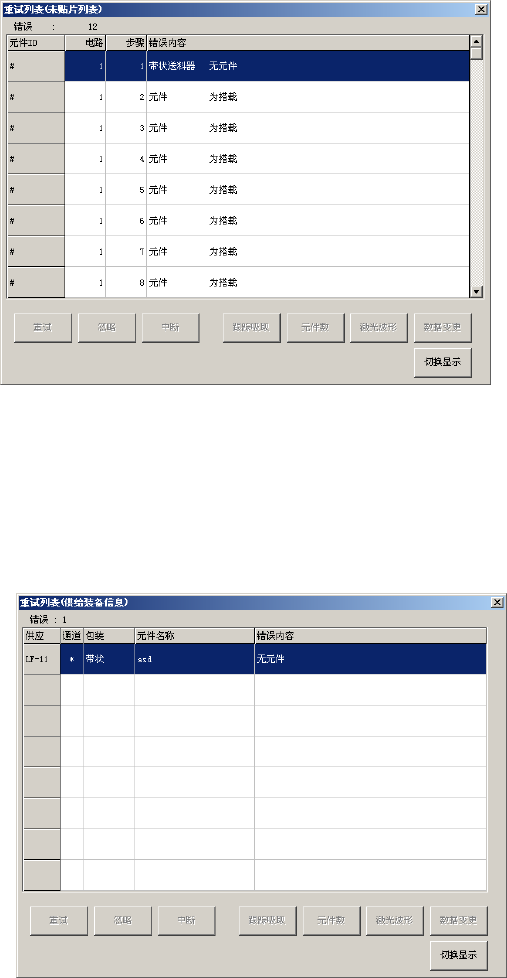 话框。错误列表按发生顺序排列,最多显示 160 件。但当所有的元件都贴片后,如仍有吸取错