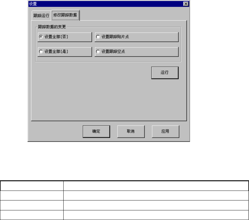 设置[修改跟踪数据]对话框(贴片点列表)的跟踪项目。