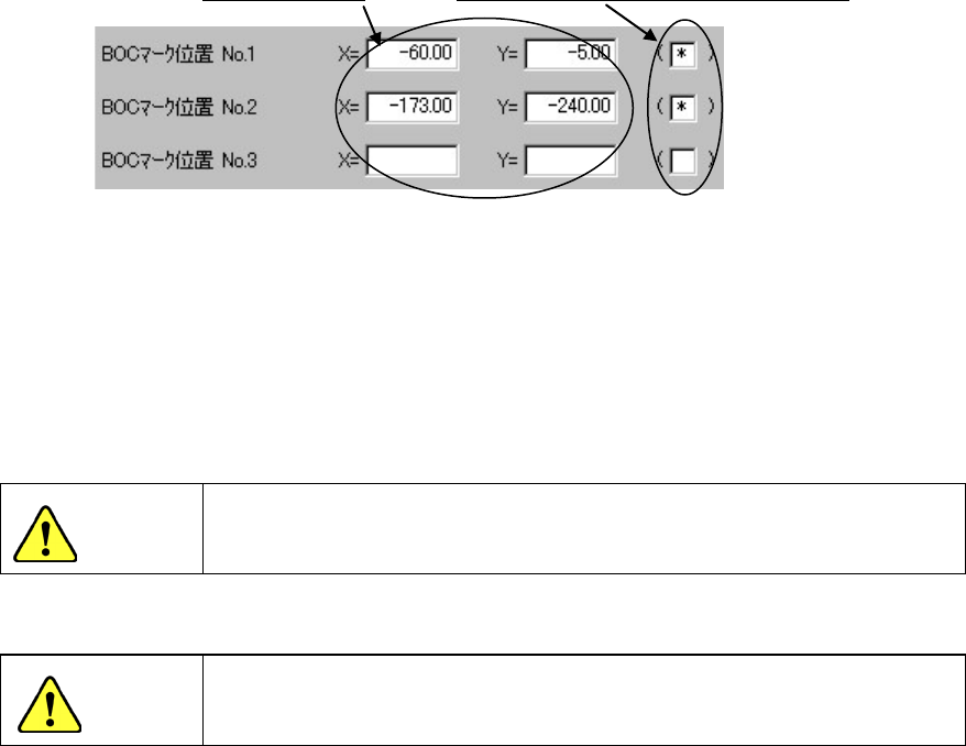 输入从基板原点到各 BOC 标记中心位置的尺寸,进行标记形状的示教。