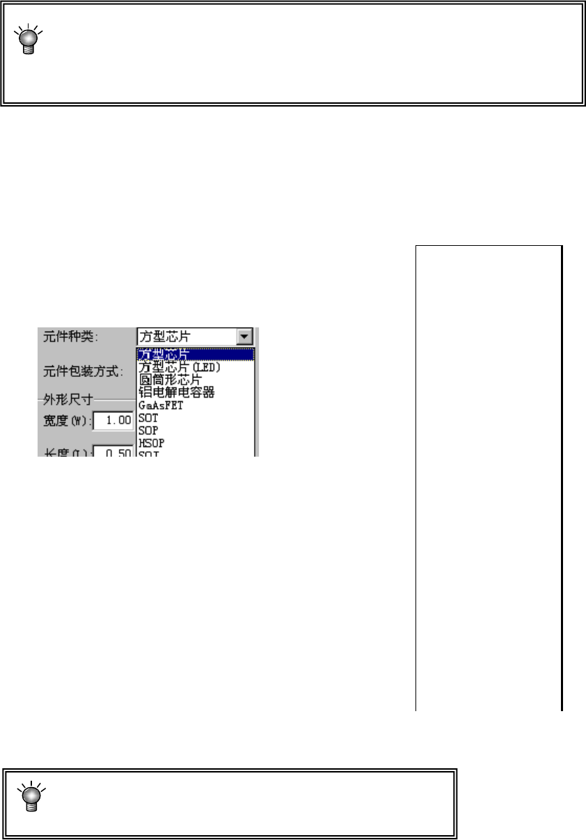 从显示的元件包装方式列表中选择元件供应设备的种类。变更元件包装方式时,可从下拉菜