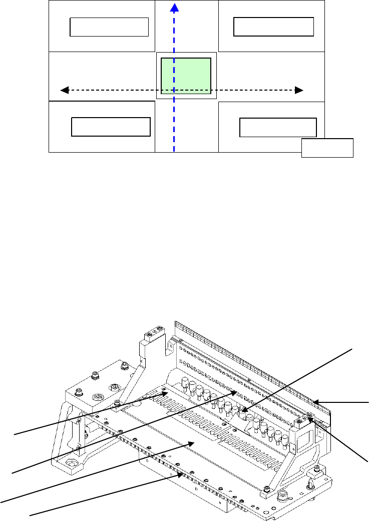 FX-2 在基板传送部分的前后、Y 台轴左右共设 4 个送料器台架以供应元件(参见下图)。