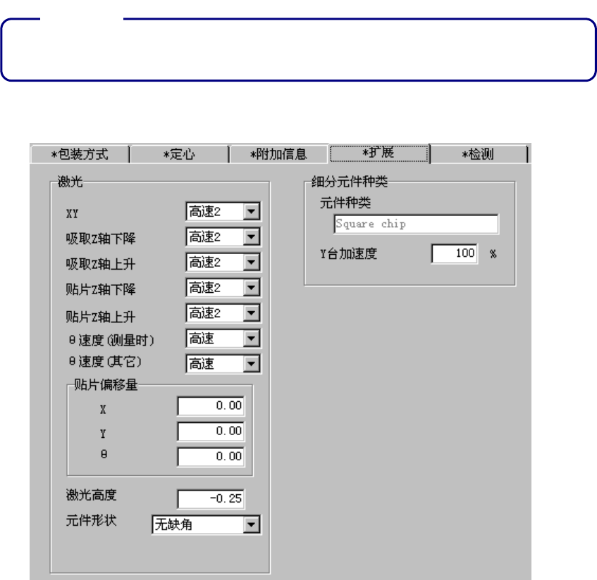 设定激光识别以外的θ轴加速度(激光定心后旋转到贴片角度等)。