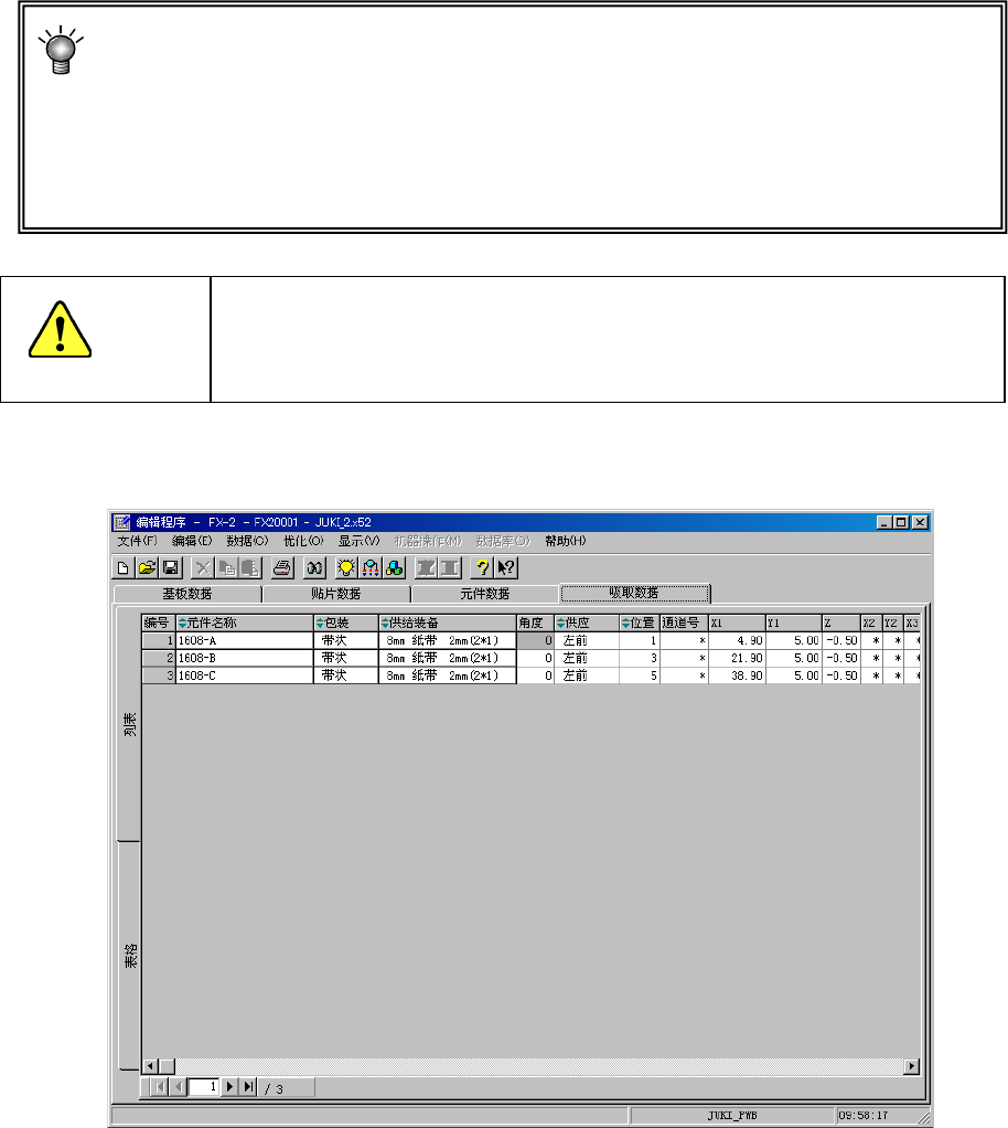 计算吸取数据的吸取坐标。因此读取其他机种的生产程序后,必须再确认吸