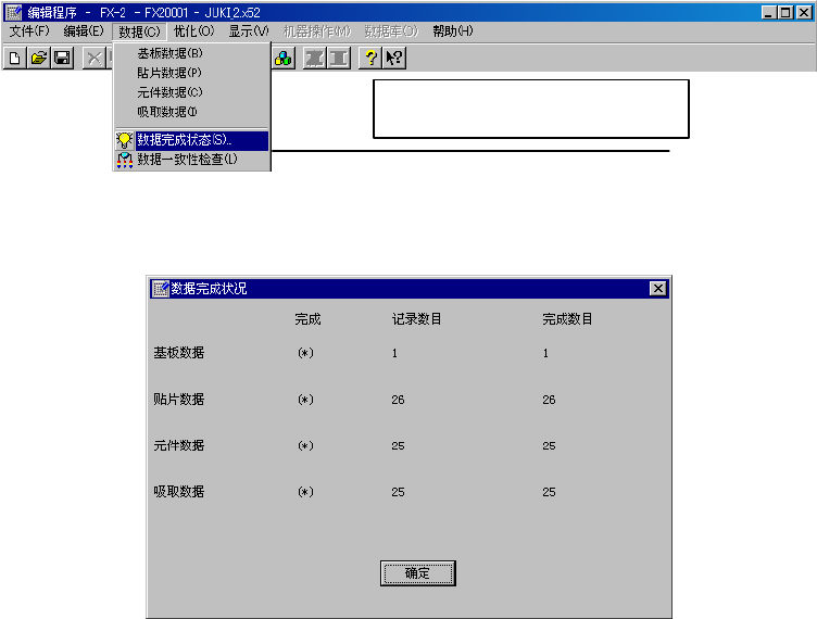 要检查生产程序数据的完成状态时,在编辑程序菜单中选择[数据],然后选择[数据完