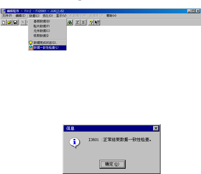 从菜单调出时,选择[数据(C)]→[数据一致性检查(L)]。