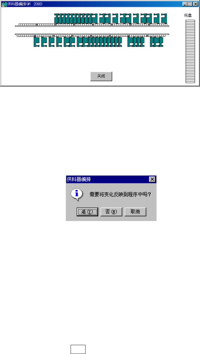 编辑后关闭供料器安排、站台选择画面时,会显示下列信息,询问是否把编辑内容反映到程序数
