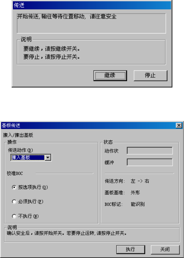 将轴移动到安全位置后,显示下列基板传送画面。