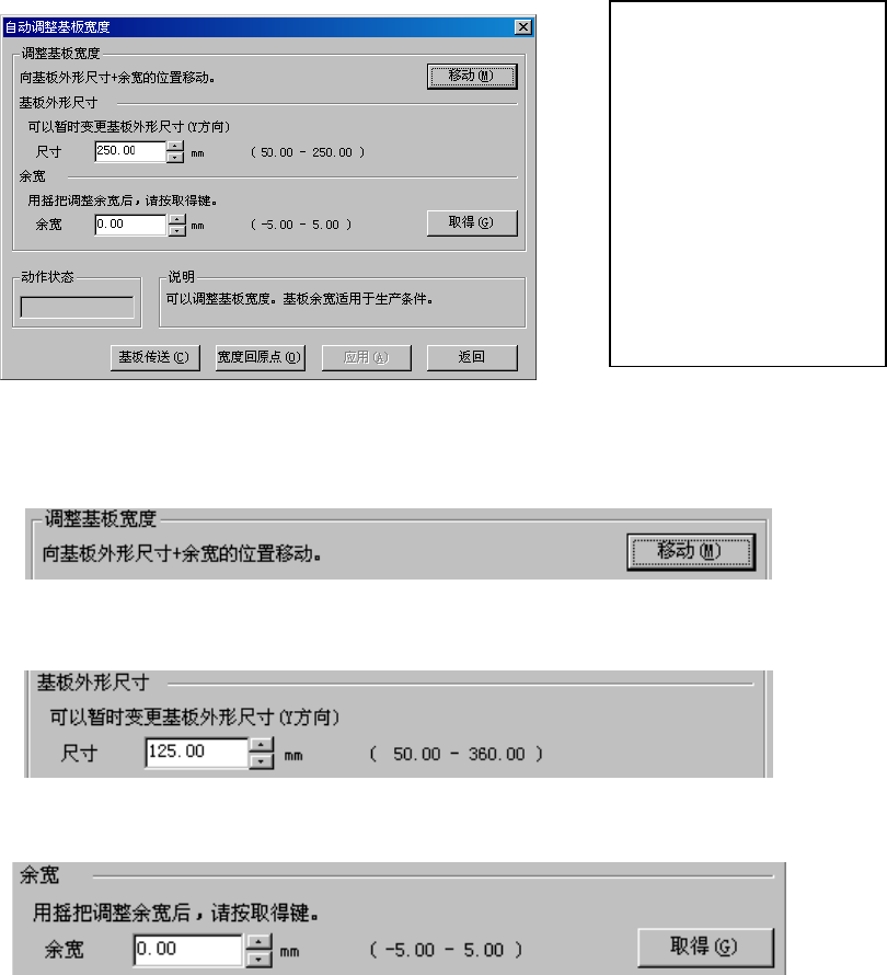向基板外形尺寸+余宽的位置移动,运行时传送宽度值适用下列设定值。