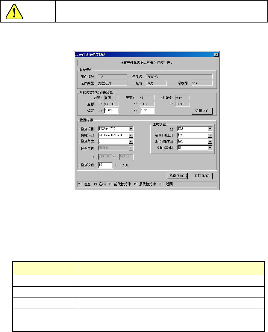 从菜单上选择“机器操作”-“确认速度”,显示如下的设置[以元件数据速度确认]对话框。