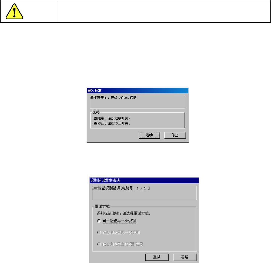 在进行时,若 BOC 标记识别失败(错误),则显示如下的选择画面。