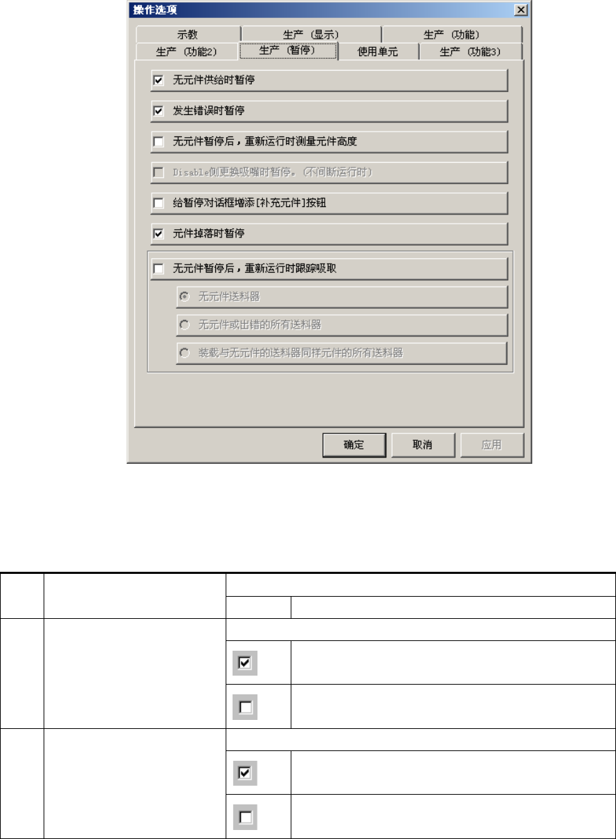 单击[生产(暂停)]标签后,会显示设置[生产(暂停)]选项对话框。