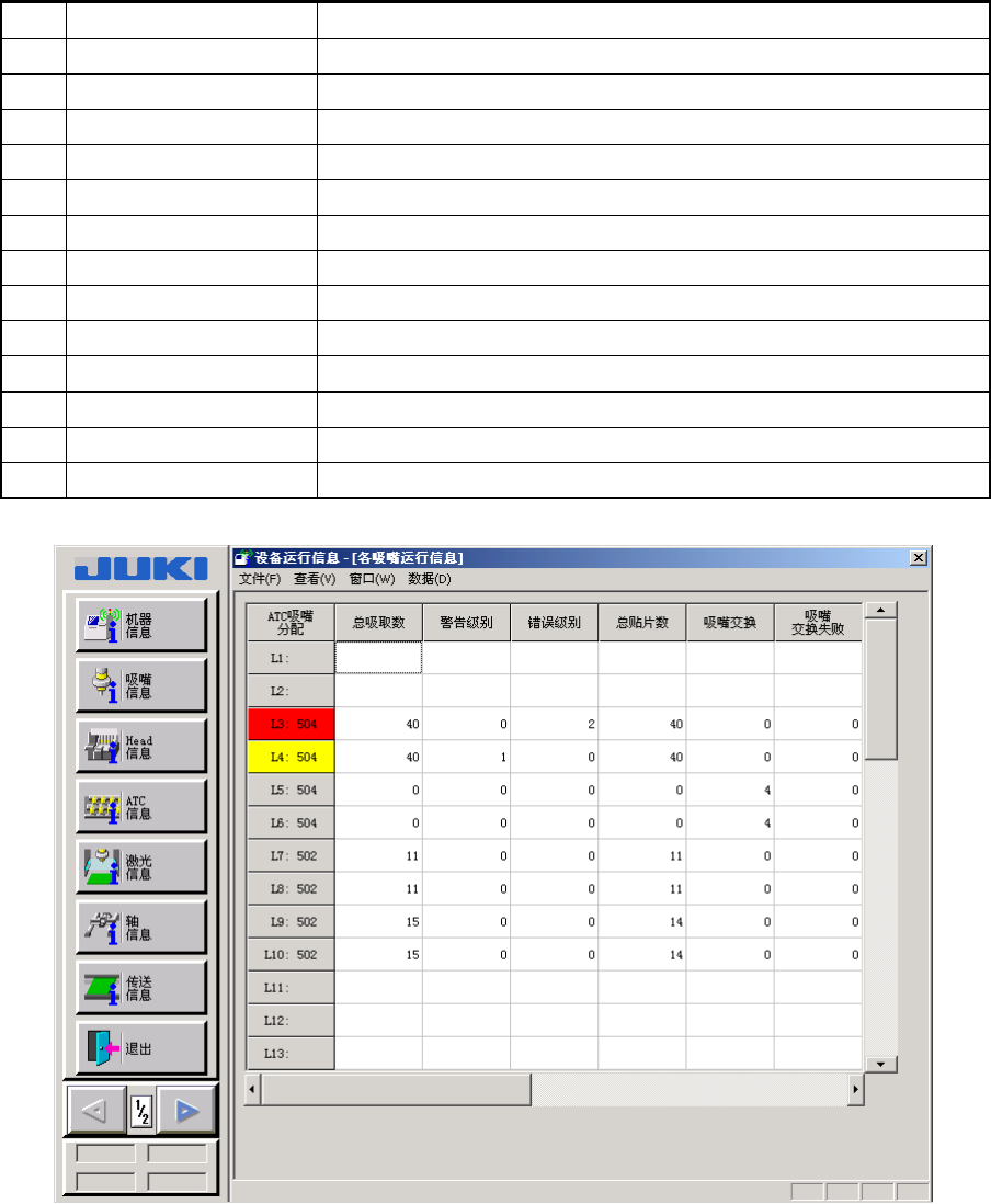 3 错误级别 显示每个吸嘴(ATC 编号)的错误级别。