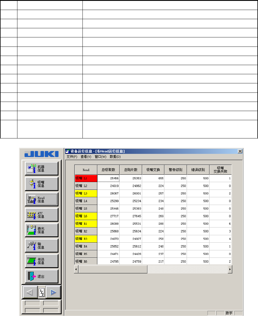 5 错误级别 显示各 Head(贴片头)(L1~L6/R1~R6)错误级别。