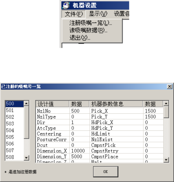 添加吸嘴信息的文件格式为“NZL*.INI”的 INI 文件(*为要添加的 3 位数的吸嘴号码)。