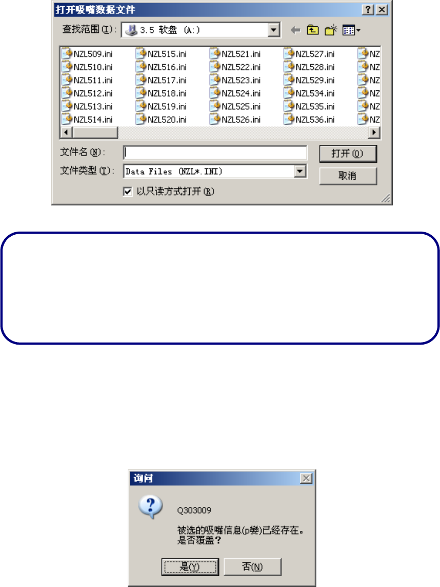 择[是]后,便会以该吸嘴信息覆盖已存在的数据。