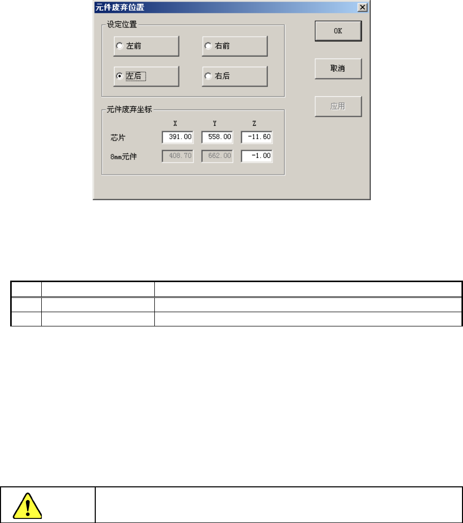 可通过单选按钮选择要设置的废弃盒的位置,直接从键盘上分别输入 X, Y, Z 的坐标值。