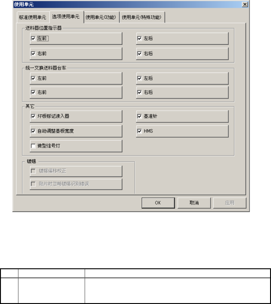 选择[选项使用单元]标签后,会显示如下的设置选项使用单元对话框。