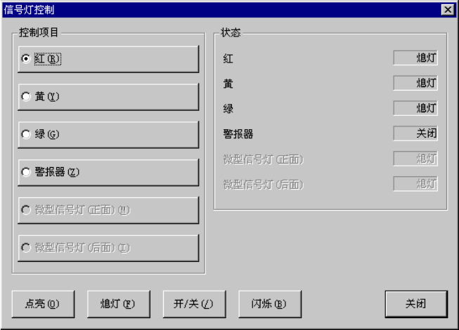 选择菜单栏中的[控制][其它][信号灯控制]后,显示下图的[信号灯控制]对话框。