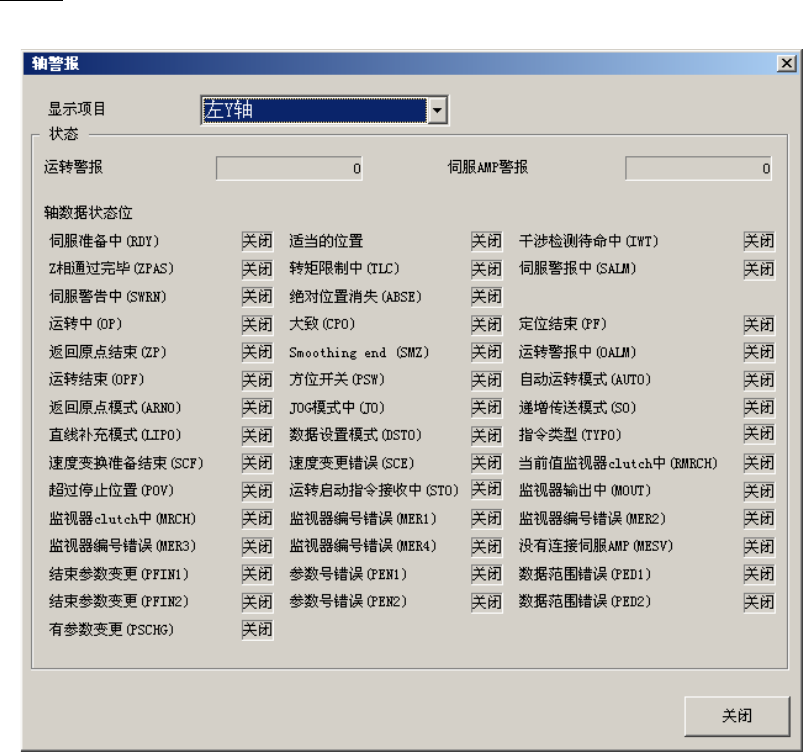 按下驱动状況对话框中的[轴警报]按钮后,显示如下画面。