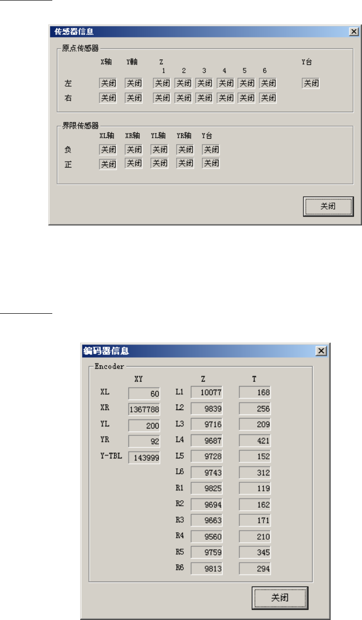 用打开/关闭按钮,显示原点传感器、界限传感器状况。