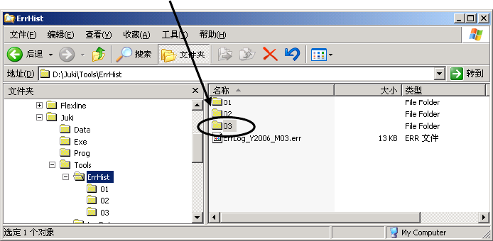 D:\Juki\Tool s\ErrHist\03 文件夹中保存的文件:E650100(16-12h34m56s).log