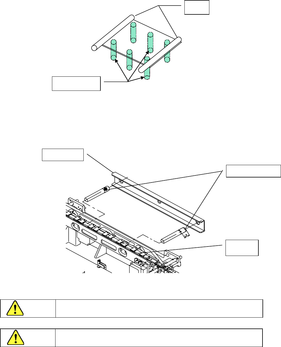 操作手册Ⅱ 5-4-9 统一更换台(选购项) 请在「台架固定销①」和「导向轴②」处涂抹润滑脂。 图 5-4- 1 1 统 一更 换台 ① 台架固定销 ② 导向轴 ① ② ② ① 5-33