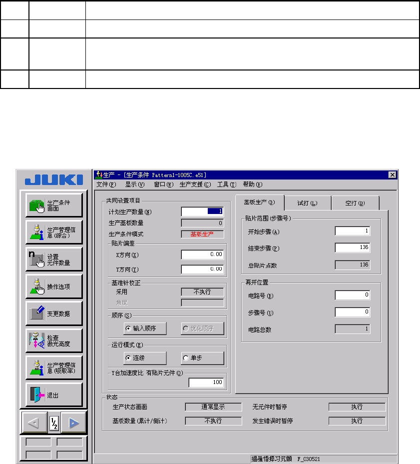 * 进行基板生产、试打、空打时,可设置各自的生产条件、试打条件、空打条件等。
