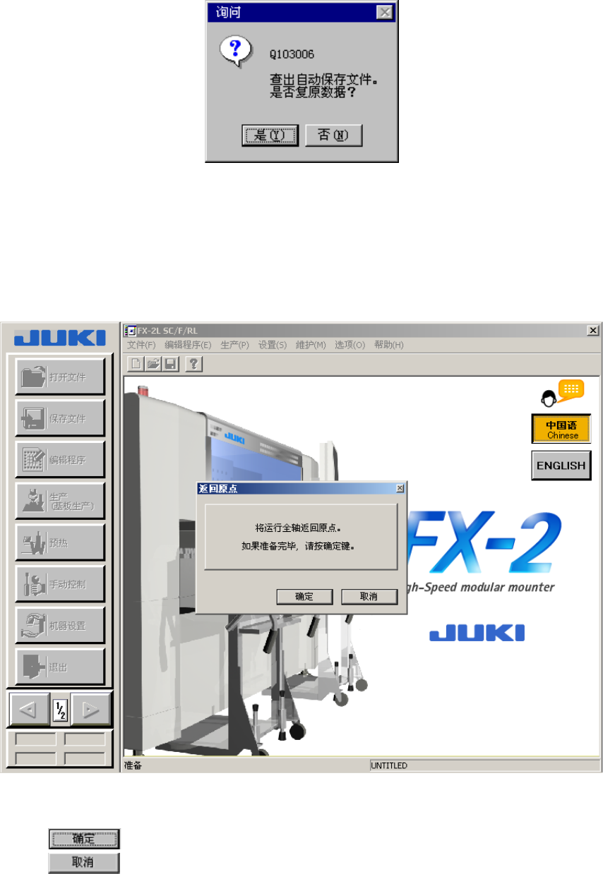 若是上次系统运行时因生产中系统异常而结束生产时,会有下图询问显示,
