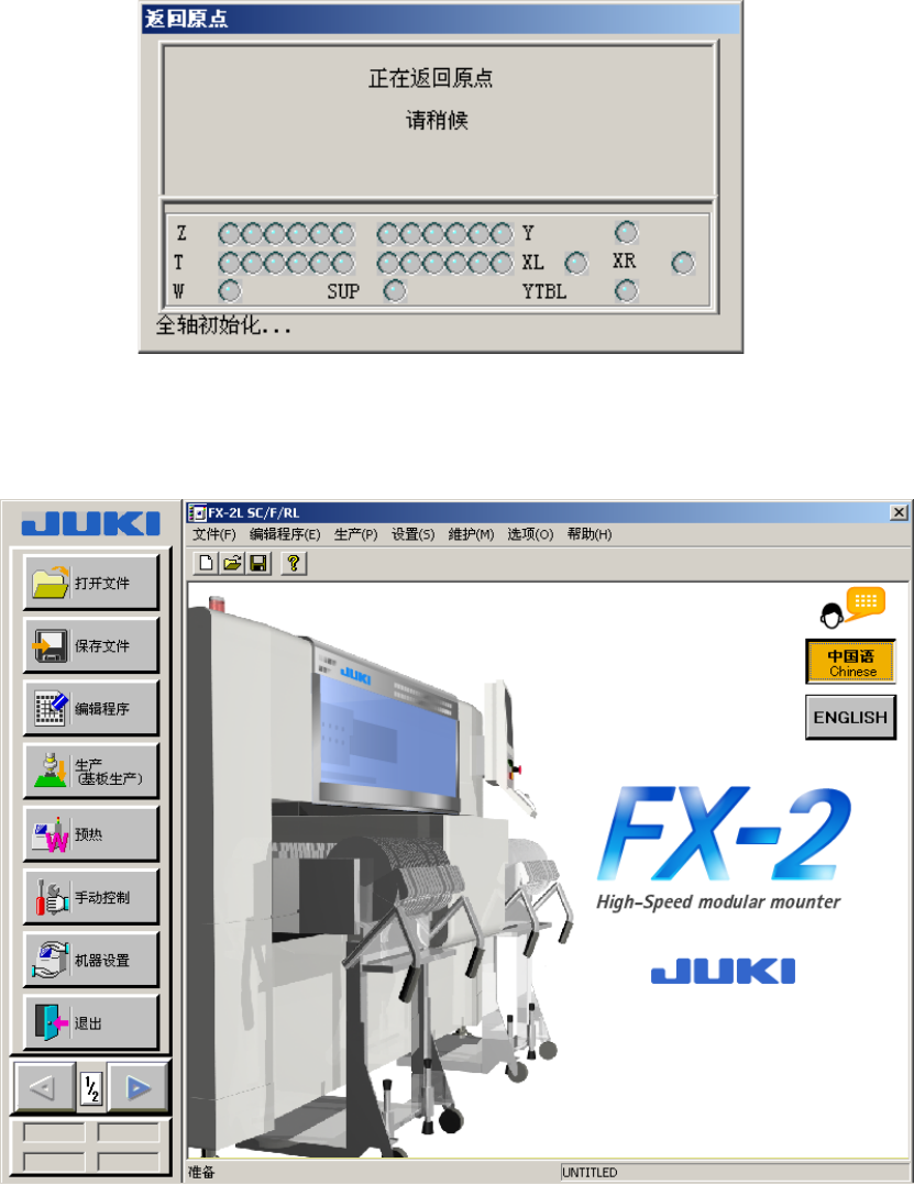 操作手册Ⅱ 图 2-2- 5 正在返回原点对话框 返回原点处理结束后,返回桌面画面。 图 2-2- 6 F X - 2 桌面画面 2-6