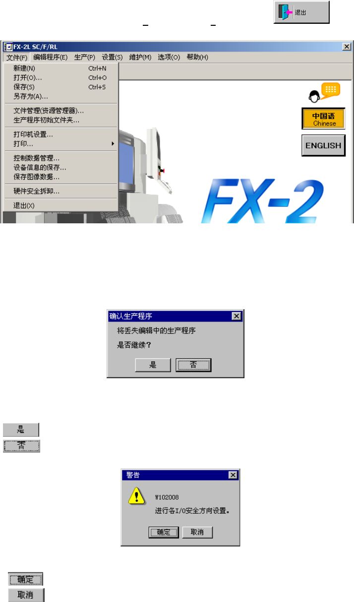 要退出系统时,从菜单中选择[文件(F)]→[退出(X)] 或按下 按钮。