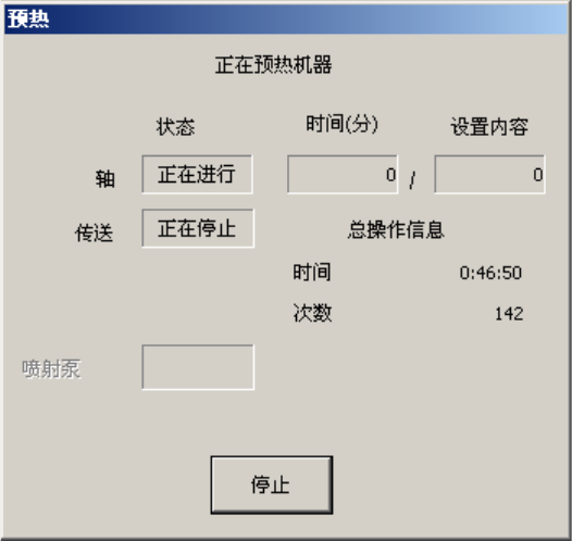 在确认结束对话框中,选择[]后,结束预热。选择[] 后,继续进行预热。