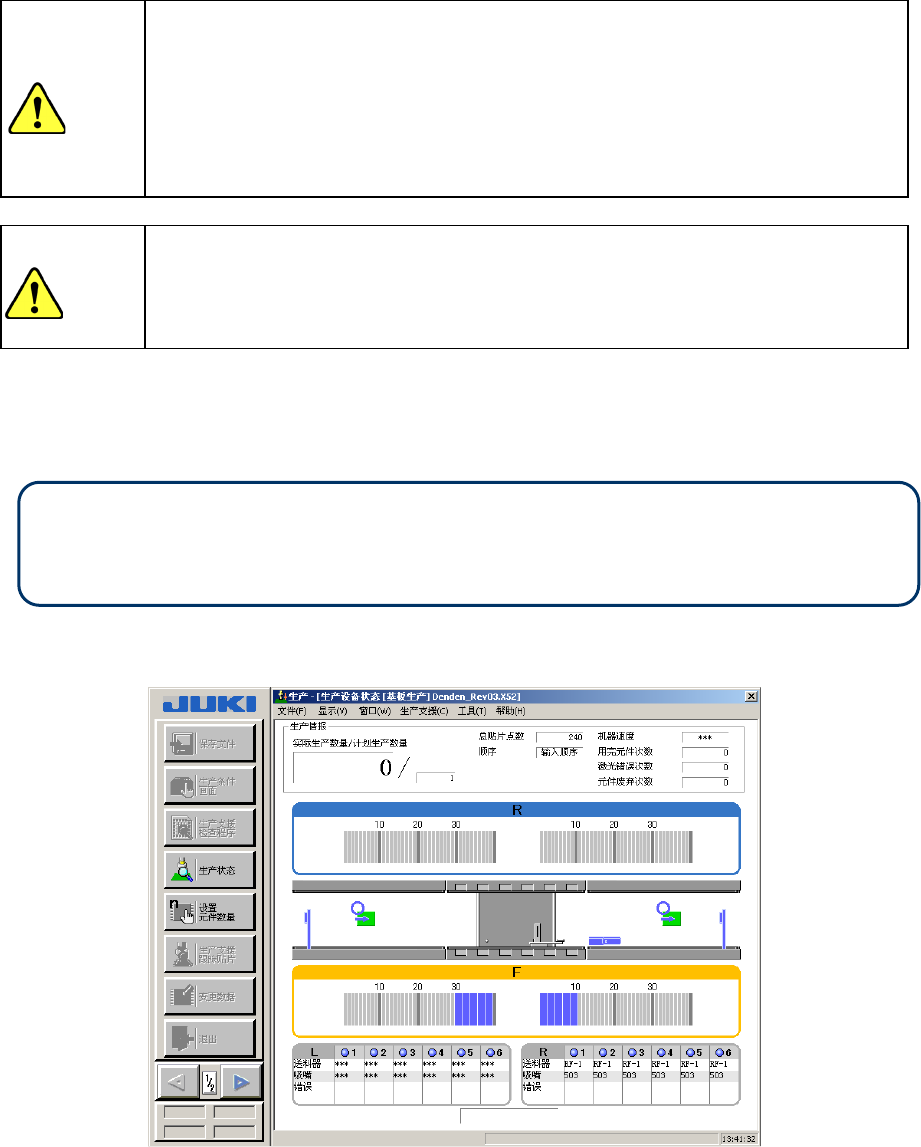 生产开始后,画面显示生产设备状态 (详细说明请参见『图 2-7-4 生产设备状态显示』)。