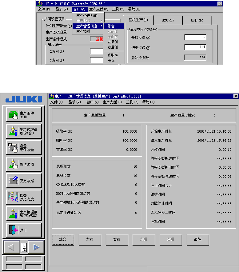 在菜单栏中选择[窗口]→[生产管理信息]→[综合]后,显示图 2-8-2 生产管理信息