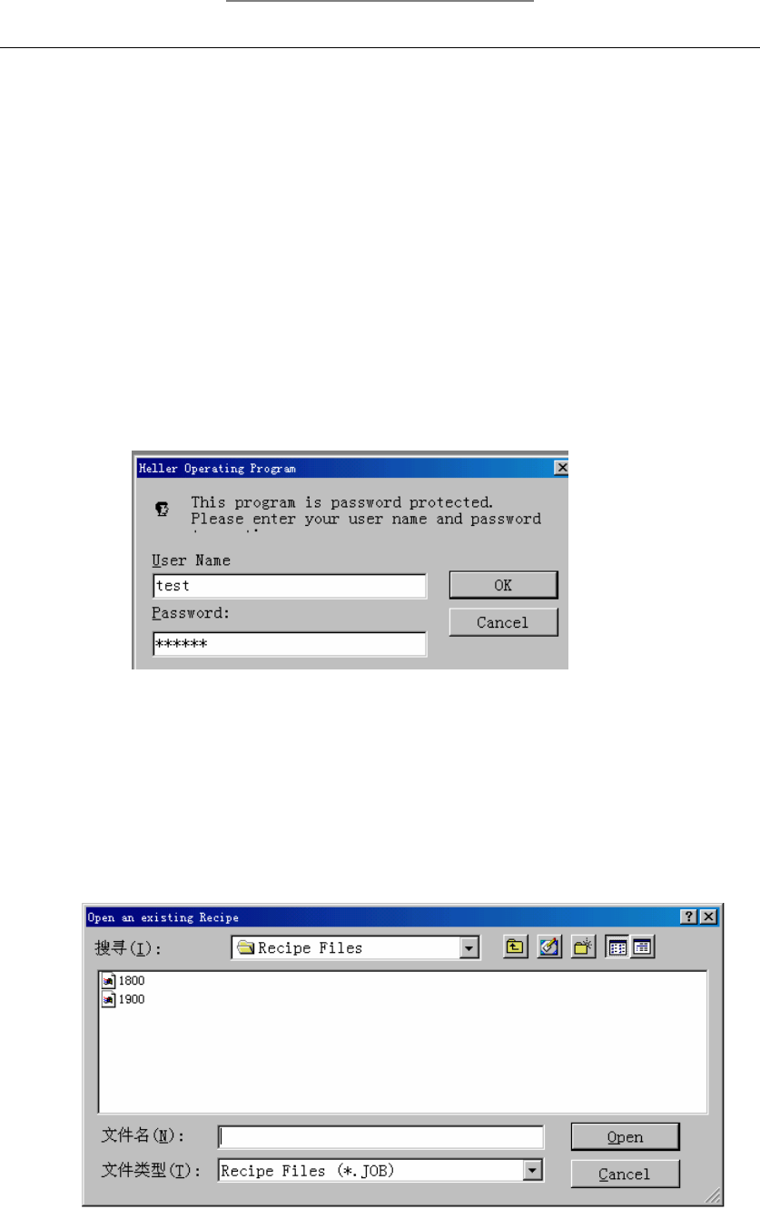 HELLER 初级培训教材 第三部分 应用软体操作向导 3.1 中文操作说明 ¾ 开机 --- 转开红色主电源开关(由“ O ”转为“ I ” ) ¾ 电脑会自动进入 Heller Reflow Software: ¾ 输入 User Name 和 Password 后进入选择画面。 ¾ 您可选择编辑 (Edit Mode) 或操作 (Operate Mode) 或只有展 示 (Demo Only) 按下“ OK ”后进入选择程式画面。…