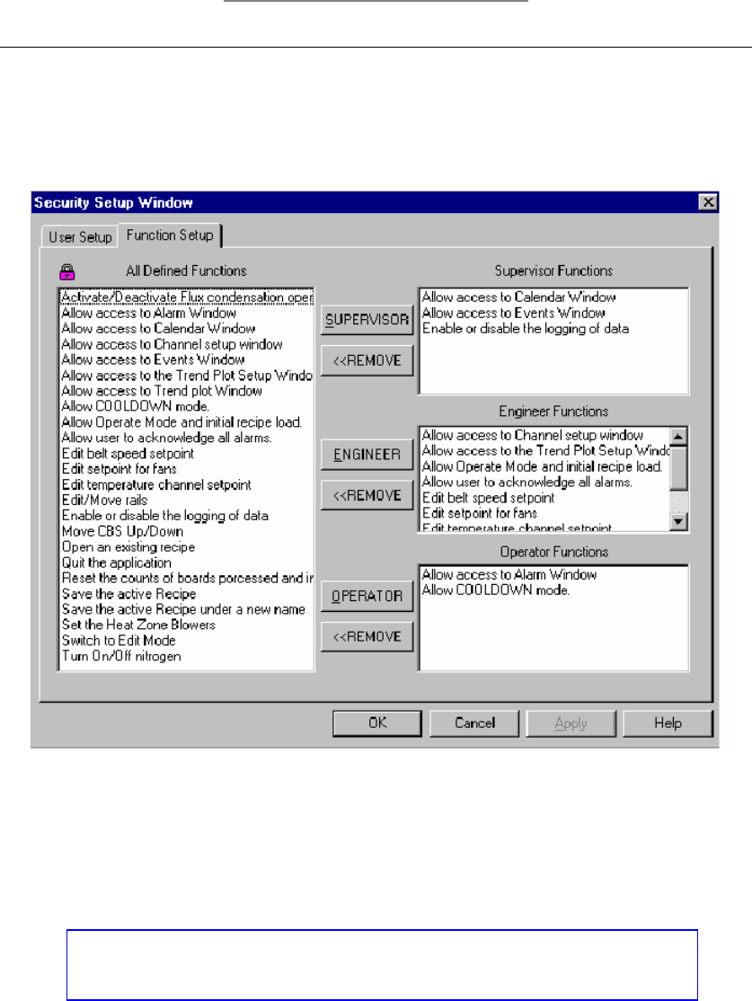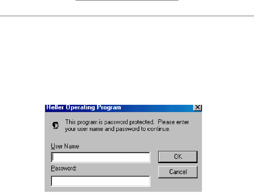 HELLER 初级培训教材 3 . 3 密码(权限)设定 ¾ 用户名设定( USER SETUP ) 新增( NEW ) :按下新增使用 后会出现: 键入新增使用者名称及密码,按下“ OK ”后再重新输入 一次确认,确认完成后,新的使用者即被设定完成 您可使用滑鼠左键点两下设定, 主管 ( SUPER V ISOR ) , 工程师( ENGINEER ) ,操作员 ( OPERA TOR )来确 认使用者的权限。 ¾ 权…