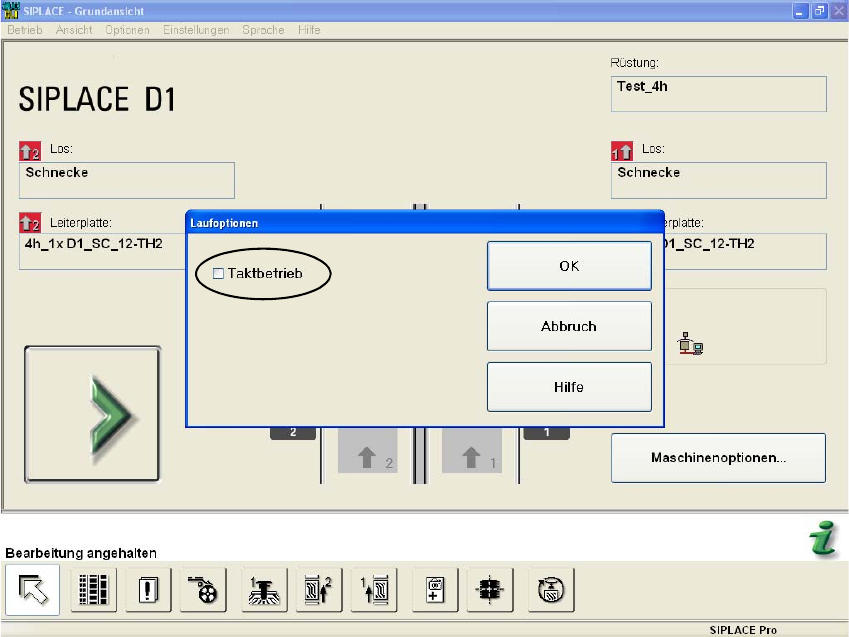 : Wählen Sie in der Grundansicht "Allgemeine Funktionen" --> "Laufoptionen" --> "Taktbetrieb".