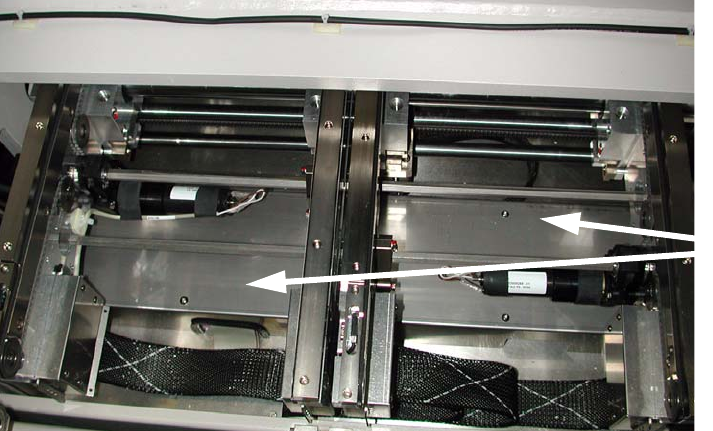 : Remove the cover over the conversion board (6 screws) beneath the output conveyor belt.