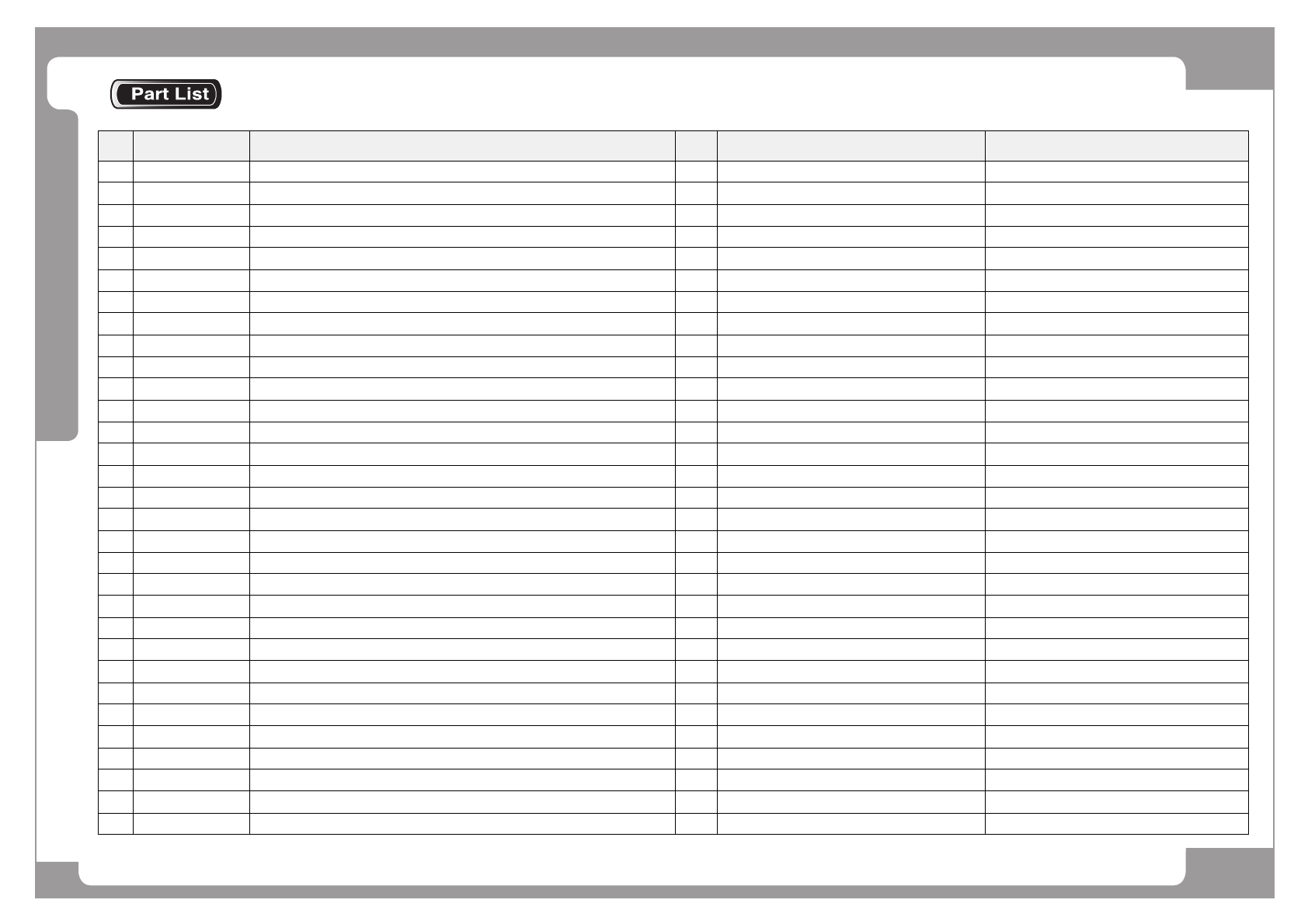 NO. PART NO. PART NAME Q'TY Old No. Supply Supply LT Reference