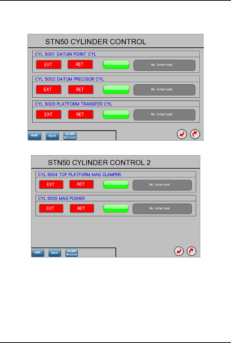 Figure 4-86 Station 50 – Cylinder Control 1 Screen