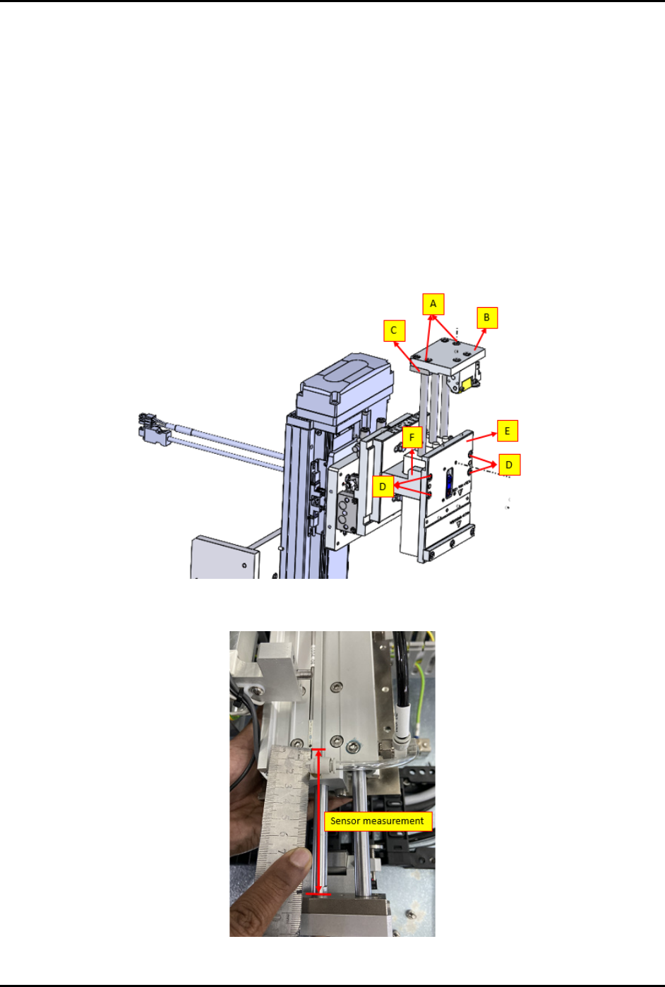 1. Loosen four (4) screws (A) to separate the sensor plate (B) with the cylinder top plate (C).