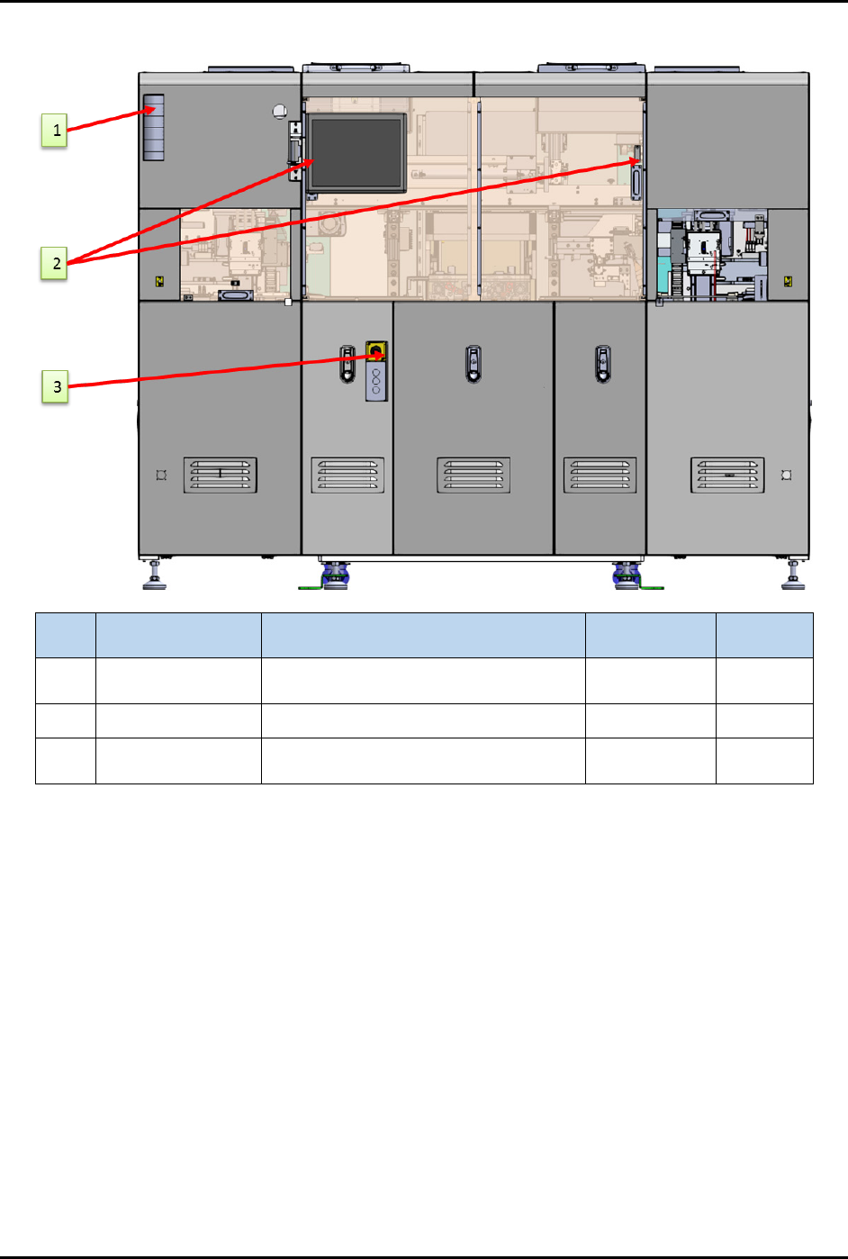FlexTRAK-OH Material Handli ng System IOM Manual Parts Replacement 7-62 © 2023 Nordson C orporation 7.12.6.2 Rear View No. Part Numb er Des cription Estimated Li fe Span (cycles) Quantity 1 0002 - 15001 - 0 0053 PATLITE …